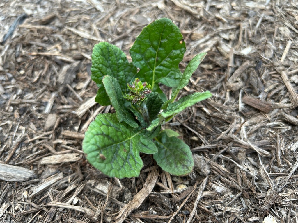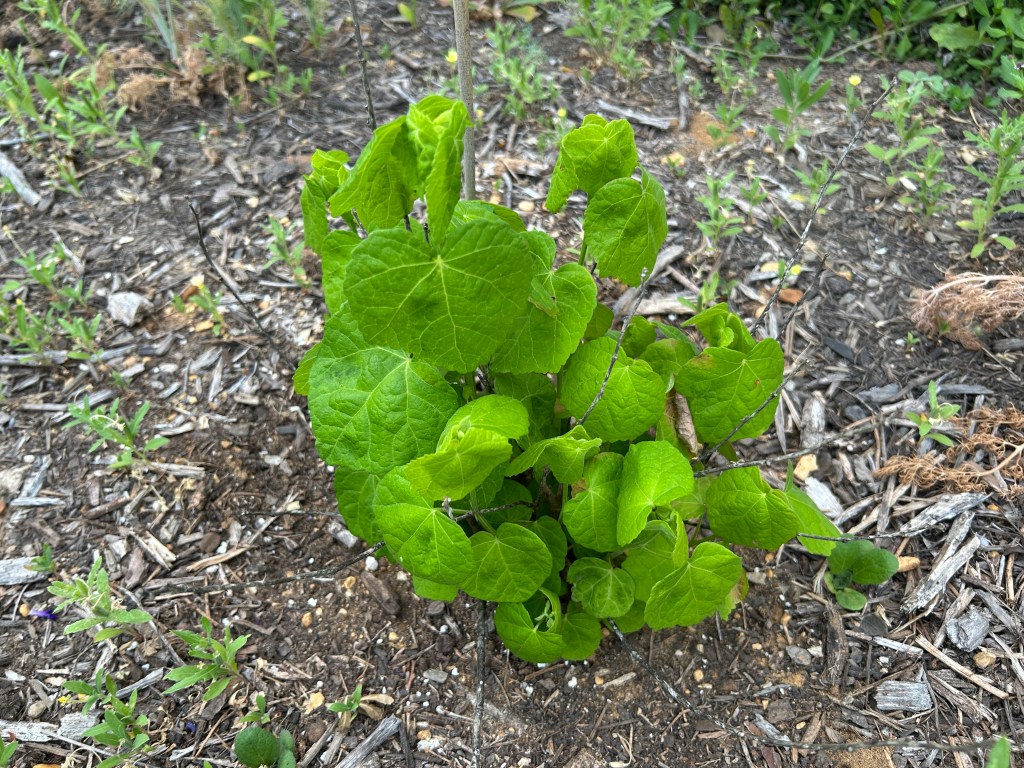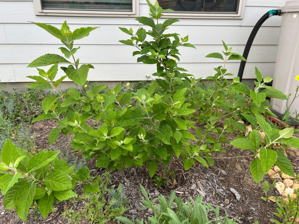 American Beautyberry (Callicarpa americana). This was one of the first things I planted in spring 2023, and then it almost didn’t make it through its first summer with the intense heat and drought that we had (plus my inexperience). It’s looking much stronger now.