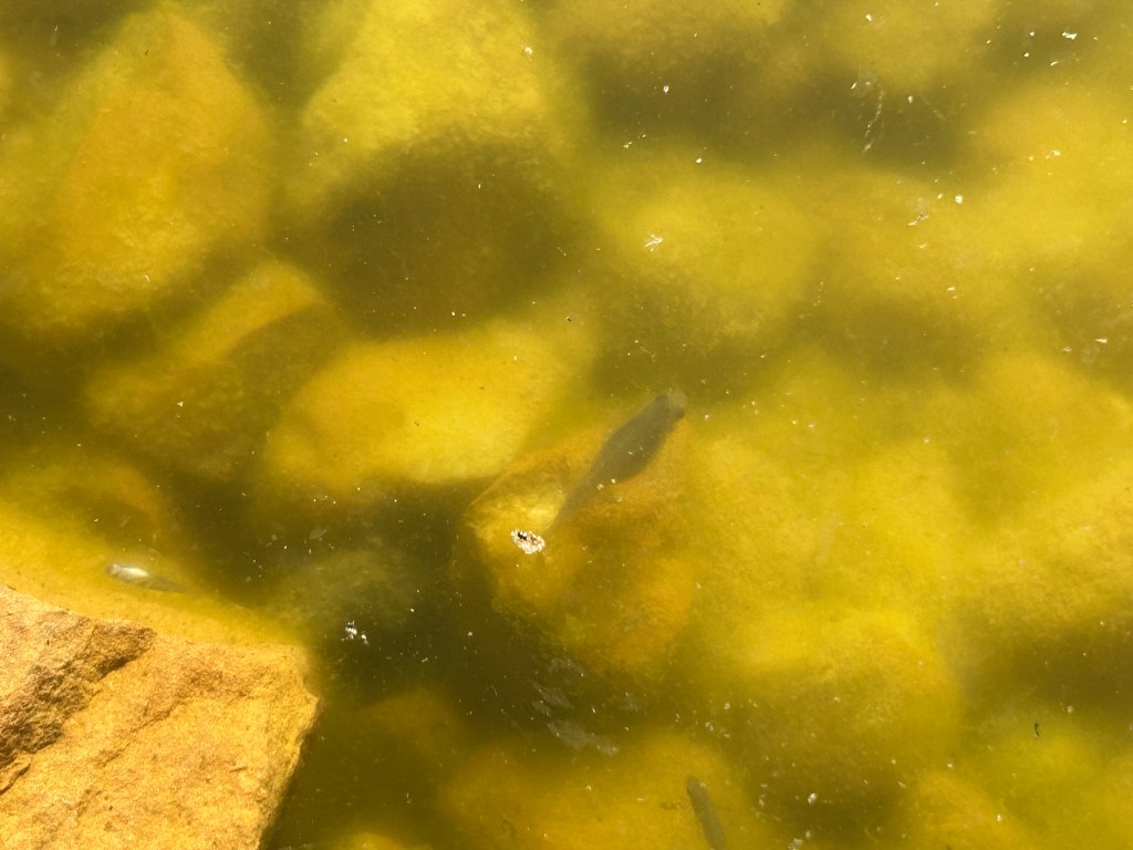 Very soon after the pond was finished in November 2024, I added six Western Mosquitofish (Gambusia affinis), chosen because of their diet: zooplankton, small insects and insect larvae, and detritus material. However, after that first day of release I never saw them again, dead or alive. Perhaps they died of starvation, cold, or being eaten by other creatures, but I’ll never know what actually happened.