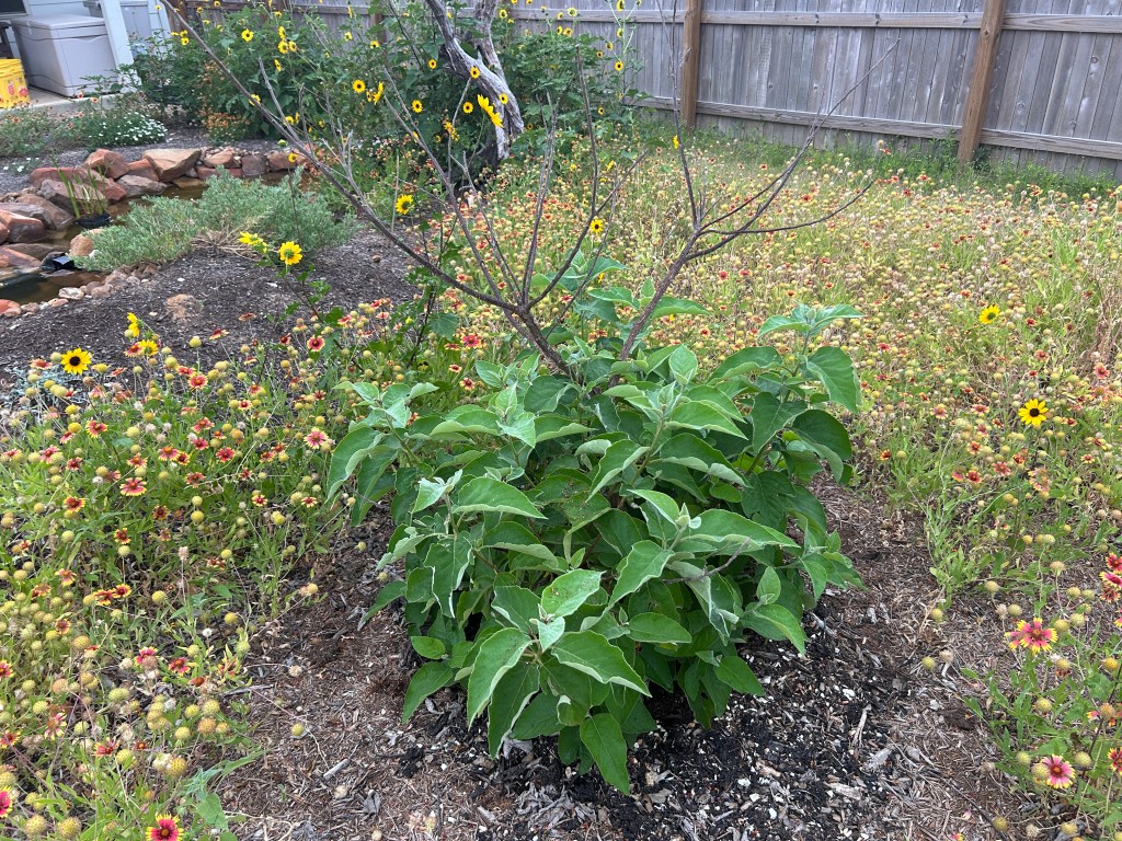 My White Mistflower aka Shrubby Boneset (Ageratina havanensis) was only planted in the spring this year, so I know it will need care to help it survive through the hot summer.