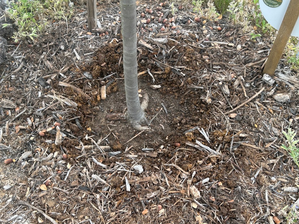 The two Live Oak trees in front of the house don’t get a lot of attention from me except for water in extreme drought conditions. So I refreshed their mulch by pulling back some of the old mulch to the outside of the rings and putting new mulch nearer the centers (but not against the trunks!).