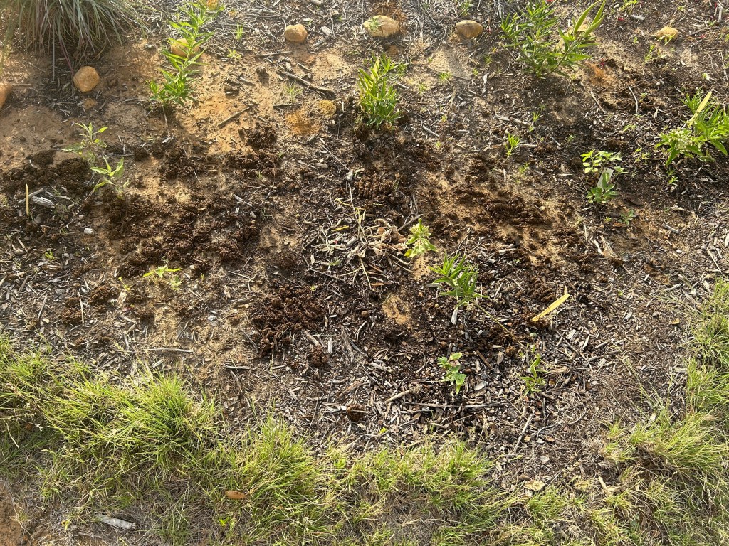 After another stir, I spread the enhanced mulch around a few plants that I thought could use some extra love.