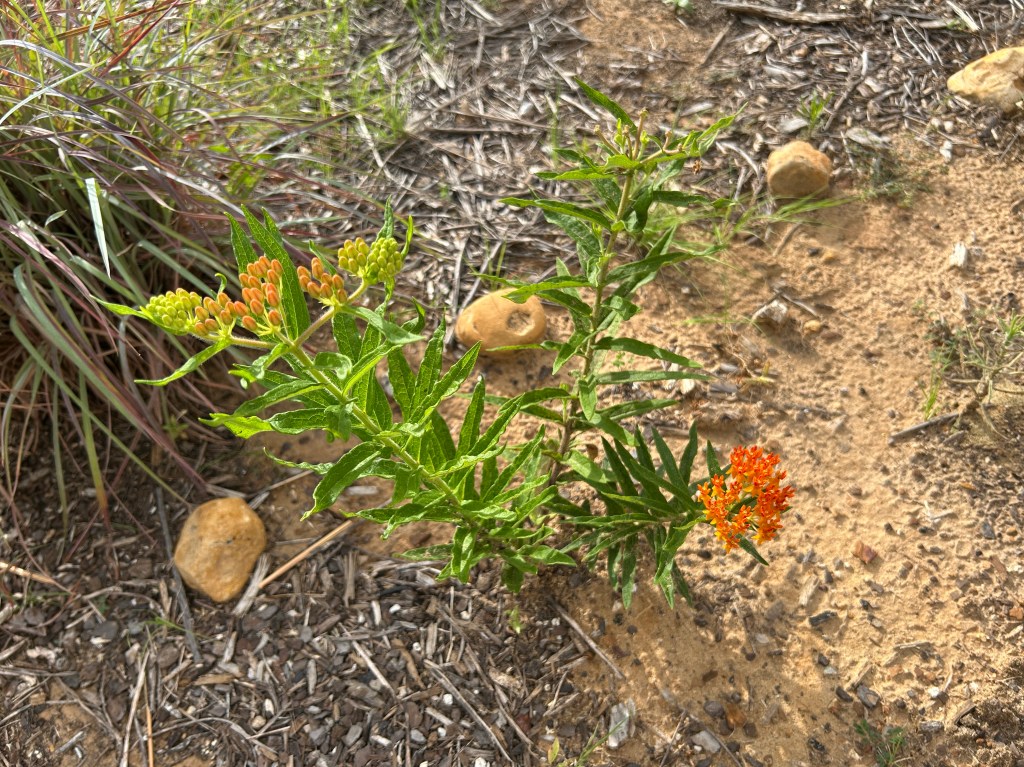 One of the Butterflyweeds (Asclepias tuberosa) — a native milkweed plant — is blooming for the first time this year.