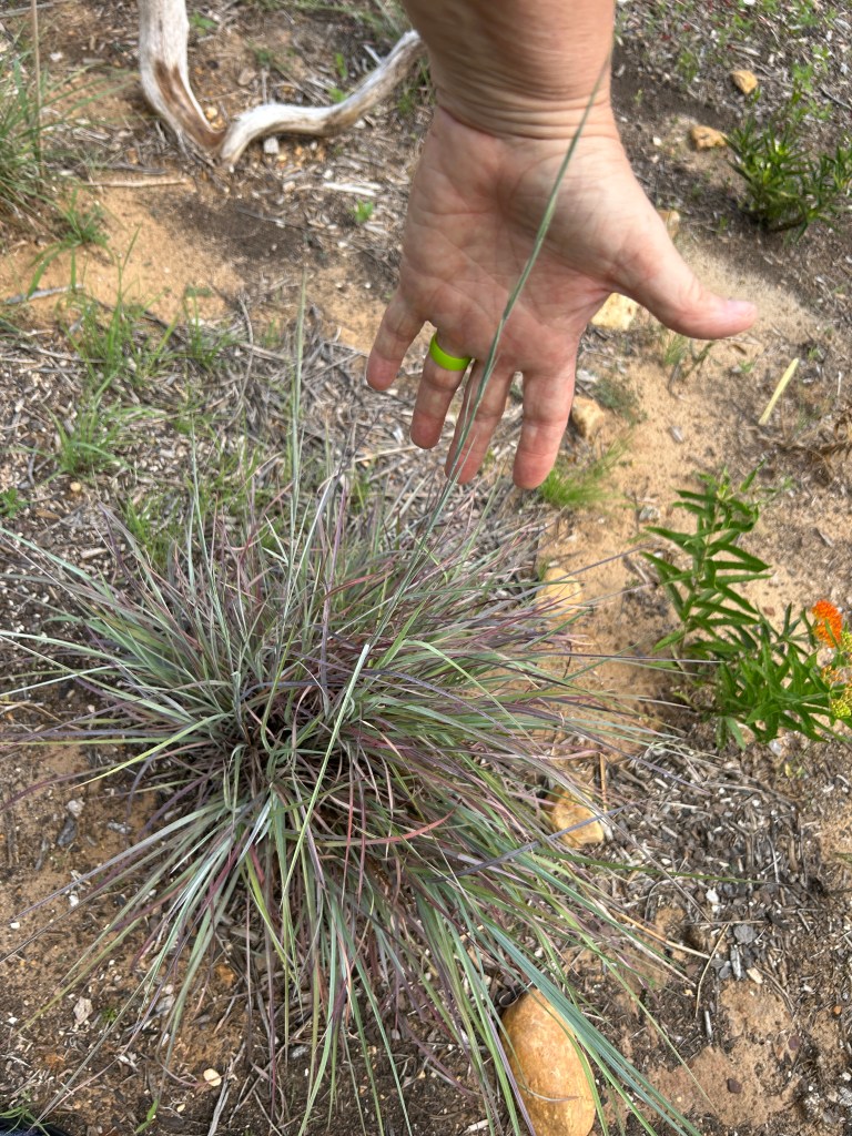 Little Bluestem (Schizachyrium scoparium) is one of the bunch prairie grasses that I have growing together in a back area. This is already producing some flower heads (photo below), as are the Gulf Muhly and Sideoats Grama, not pictured.