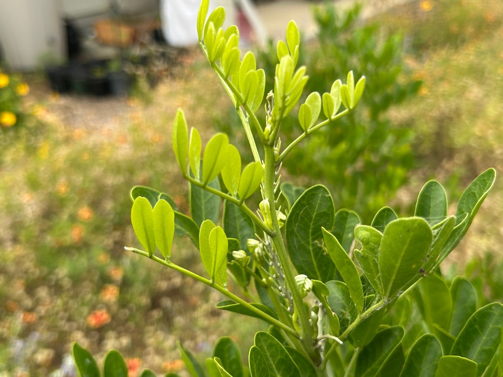Lindheimer’s Senna (Senna lindheimeriana) was only planted last fall, but it survived the winter just fine and now is having a growth spurt. I think I see flower buds.