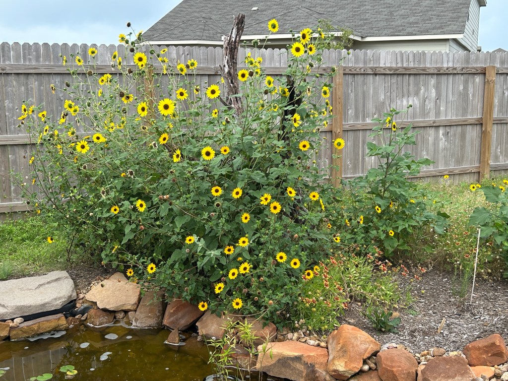 Sunflowers were about a foot taller than they were when I left. These are a mixture of Common Sunflower (Helianthus annuus) and Beach Sunflower (Helianthus debilis).