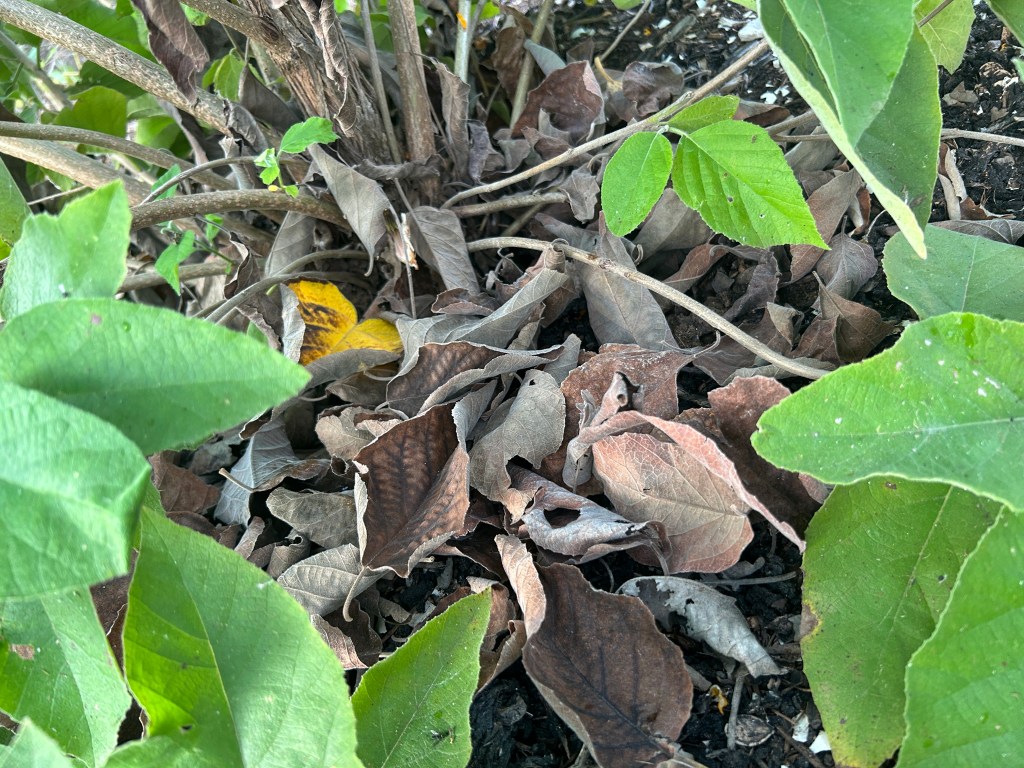 One of the many reasons I like this Mexican Olive tree is that the leaves it drops are sturdy and form a small area of leaf litter habitat, which is so important as shelter for several small creatures. Such habitat is rarely found in this new development where there are no mature trees, and where many homeowners would rather discard dead leaves than keep them on the ground.