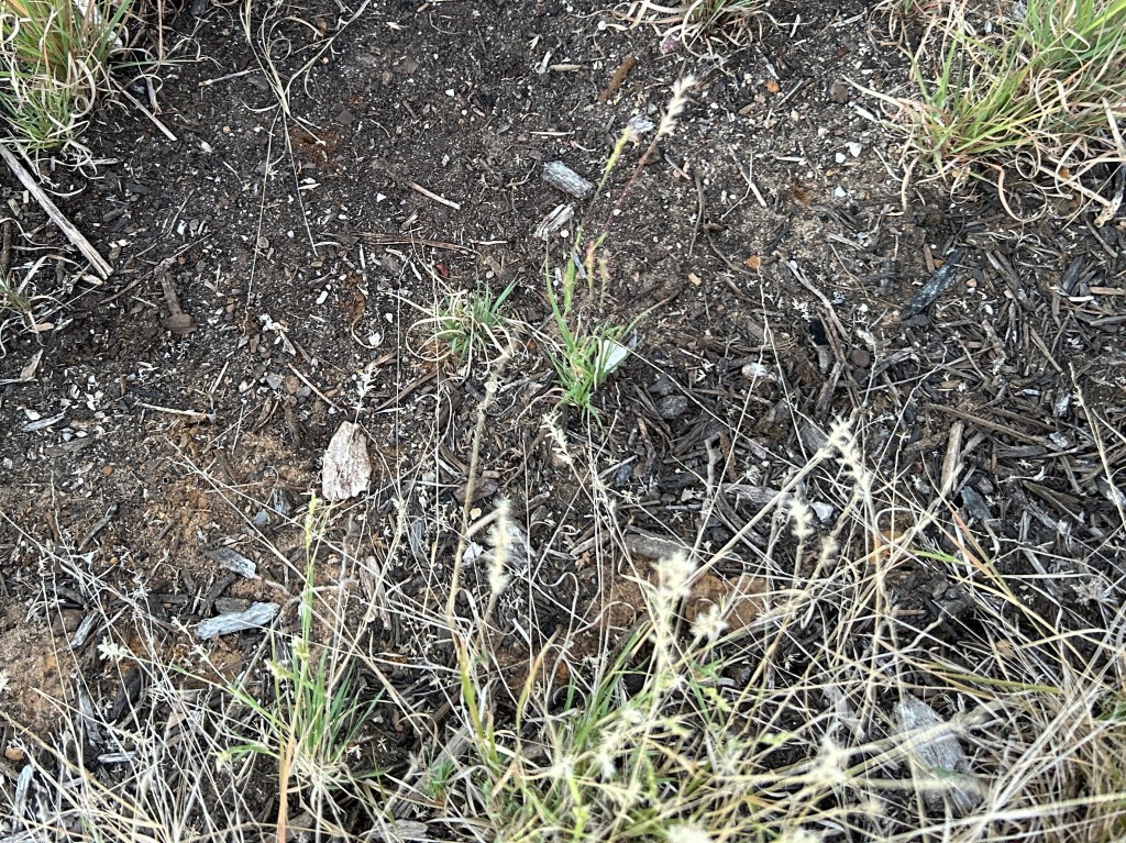 And here is an example of a little clump of Curly Mesquite (center of the photo below) that has migrated in from the Thunder Turf area (bottom of the photo).
