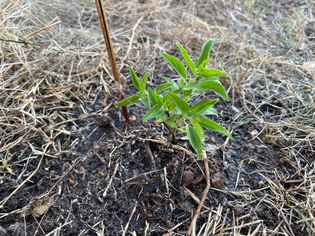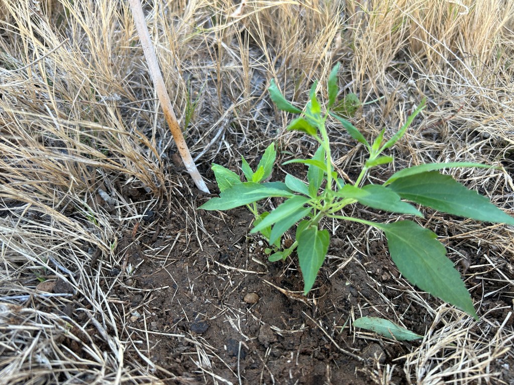 (2) Planting purchased plants. This wasn’t in the original plan, since I hoped that the seedlings and seed generated by my own plants would be enough to get a population going in the meadow. However, there were two healthy little plants in my local Native Plant Society of Texas plant sale recently, so I bought them!