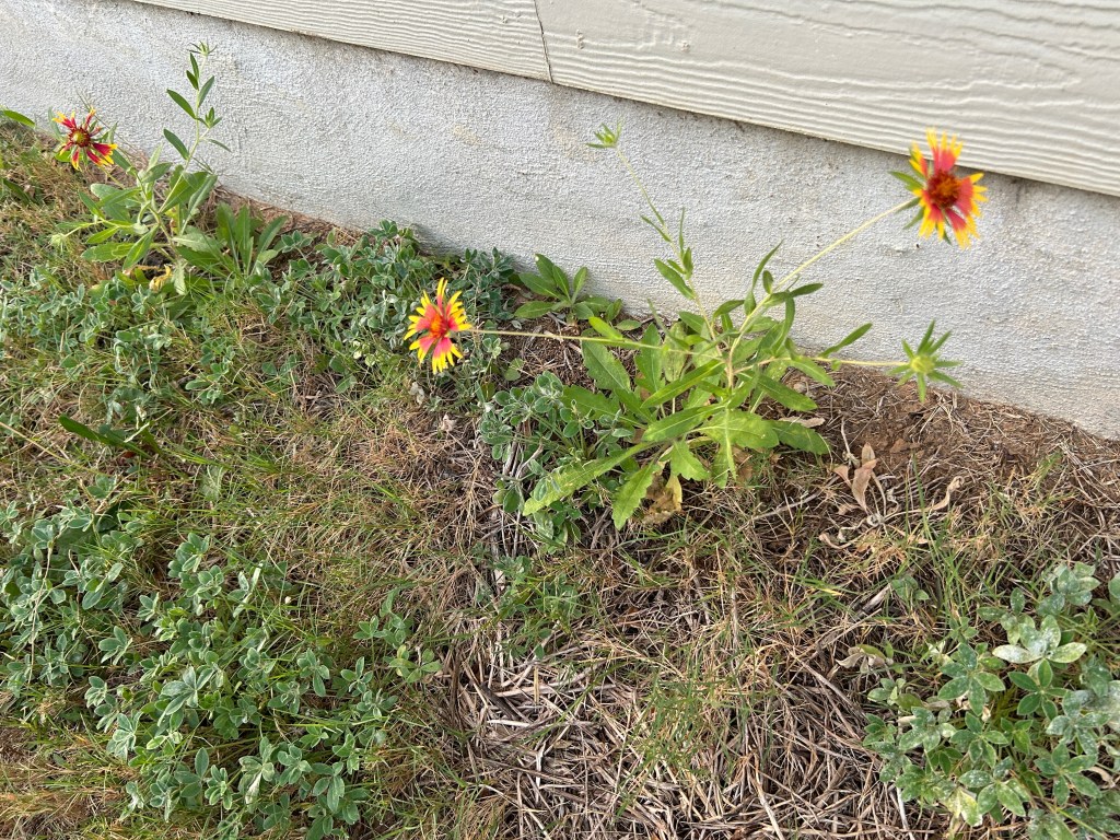 Here’s a wider view of the area beside the north side of the house, in front of the AC unit. The Firewheels pictured above are about a third of the way from the front of this photo. It will be interesting to see how this develops over the next few months. I don’t think that this location is really sunny enough for my wildflowers, but even just foliage would be helpful to cover and secure the soil.