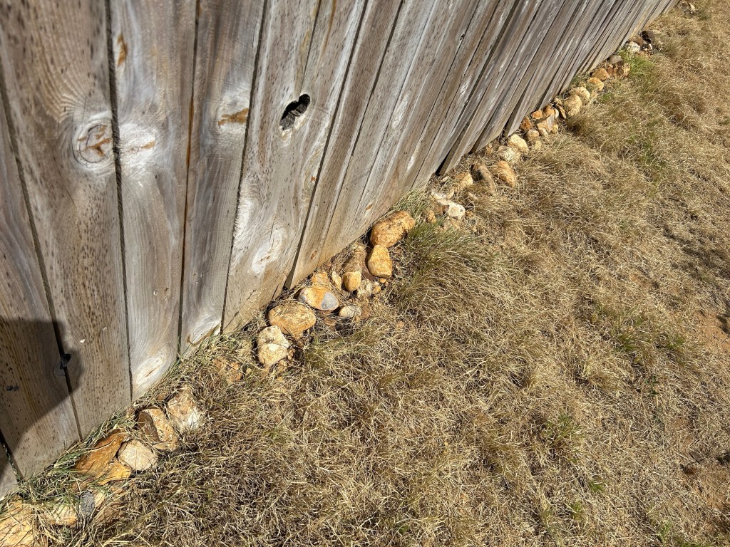 When we first moved here in 2023, the neighboring lots had not been developed yet. As a makeshift boundary at the edge of our property, I placed stones (all dug out of the ground here!). The primary goal of the stones was to prevent erosion of soil out of our garden. Now that we’ve been here almost three years, the “temporary” stones are still in place, and eventually I will need to decide whether or not they are serving any useful function. If not, I may as well remove them.