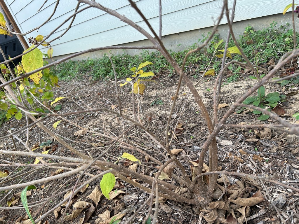 American Beautyberry (Callicarpa americana) has already lost most of its leaves.