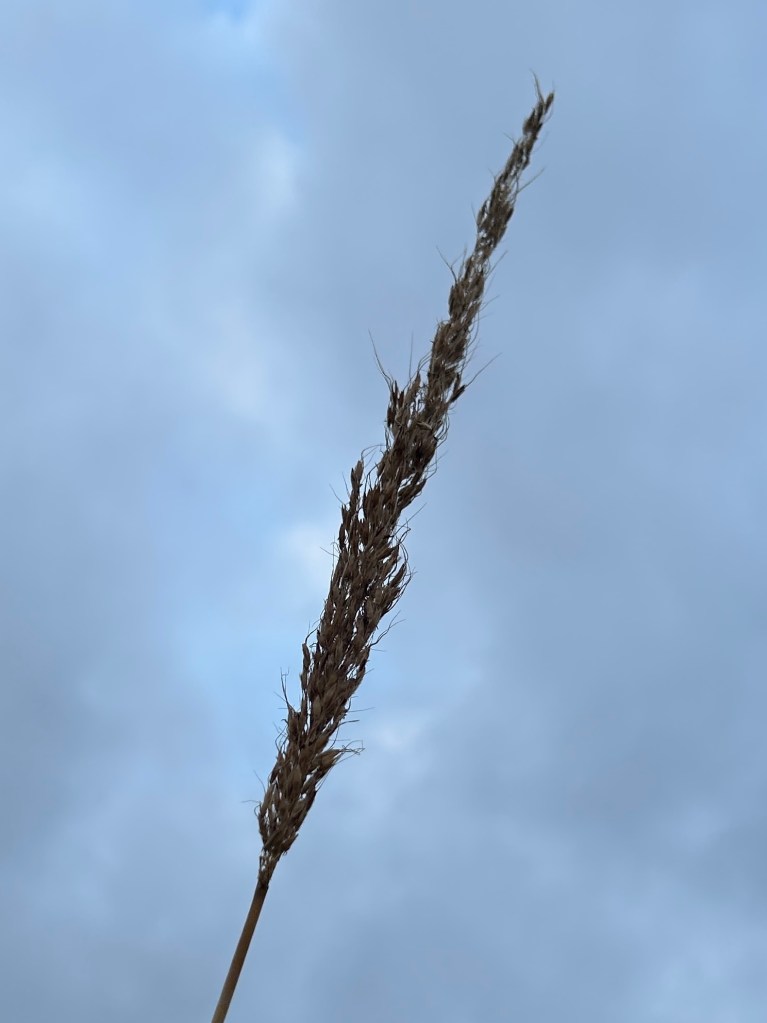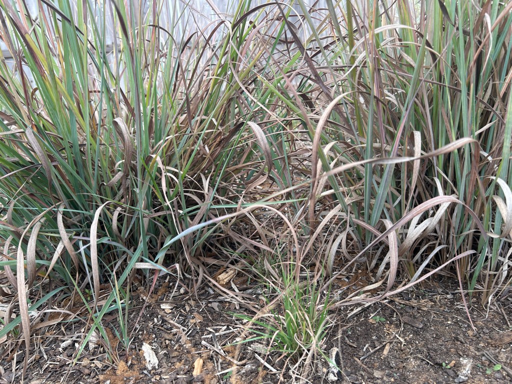 Bunch grasses, such as the native prairie grasses that I have, are places where a variety of creatures can shelter. The bigger ones in this photo are Indiangrass (Sorghastrum nutans).