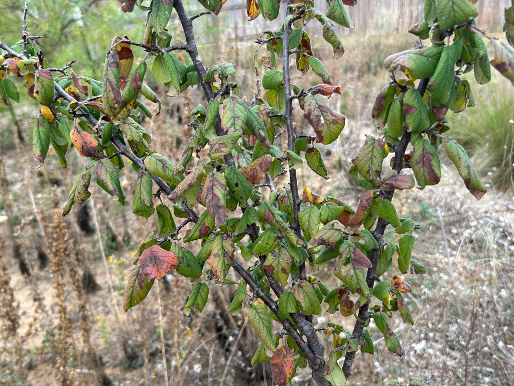 Mexican Plum (Prunus mexicana) looks like it will be losing its leaves soon.