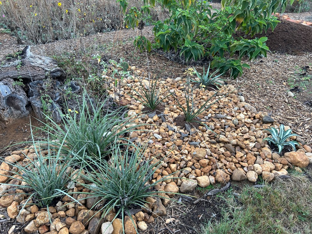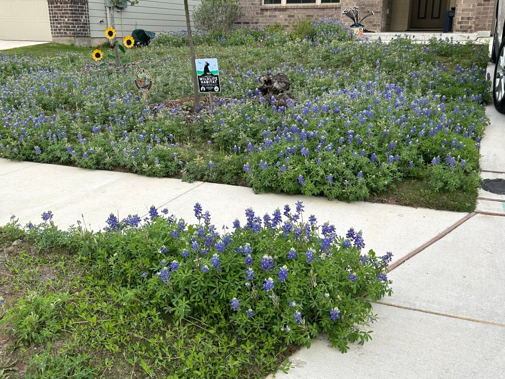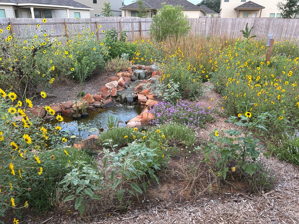 I moved to Seguin, Texas in February 2023, and that’s when I started the process of transforming our bare builder’s lot into a nature garden with priority given to native or adapted plants. We are in Plant Hardiness Zone 9a and our soil (below the builder rubble) is sandy, being part of the Post Oak Savannah ecosystem. Before this area was developed into housing, it was farmland.