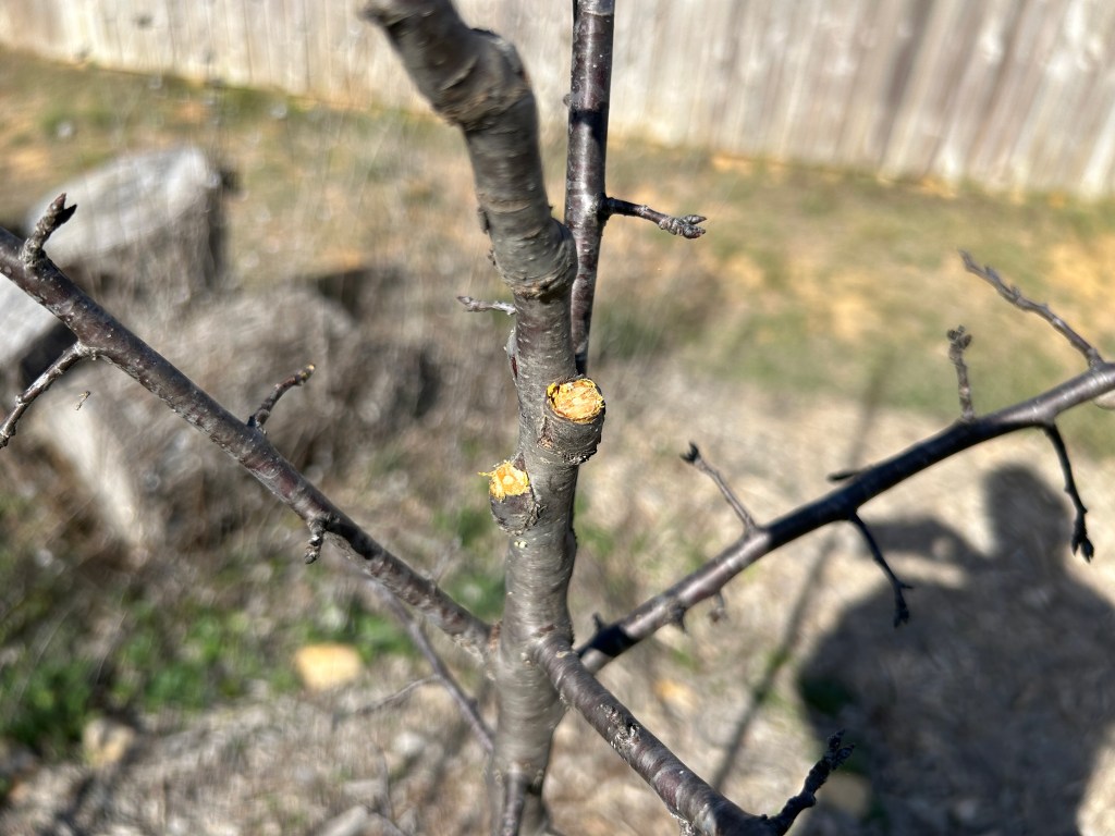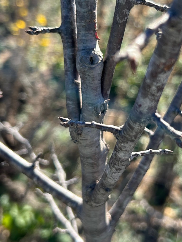 A good resource for tree management guidance is the Trees Are Good website, and for me in particular, this page about pruning young trees. A relevant quote for my Mexican Plum is this: “Narrow angles of attachment can enclose bark within a branch union. Such growth is called included bark, a condition that weakens the branch attachment and may lead to failure when the tree matures. Branches with weak attachments should be pruned when small.”