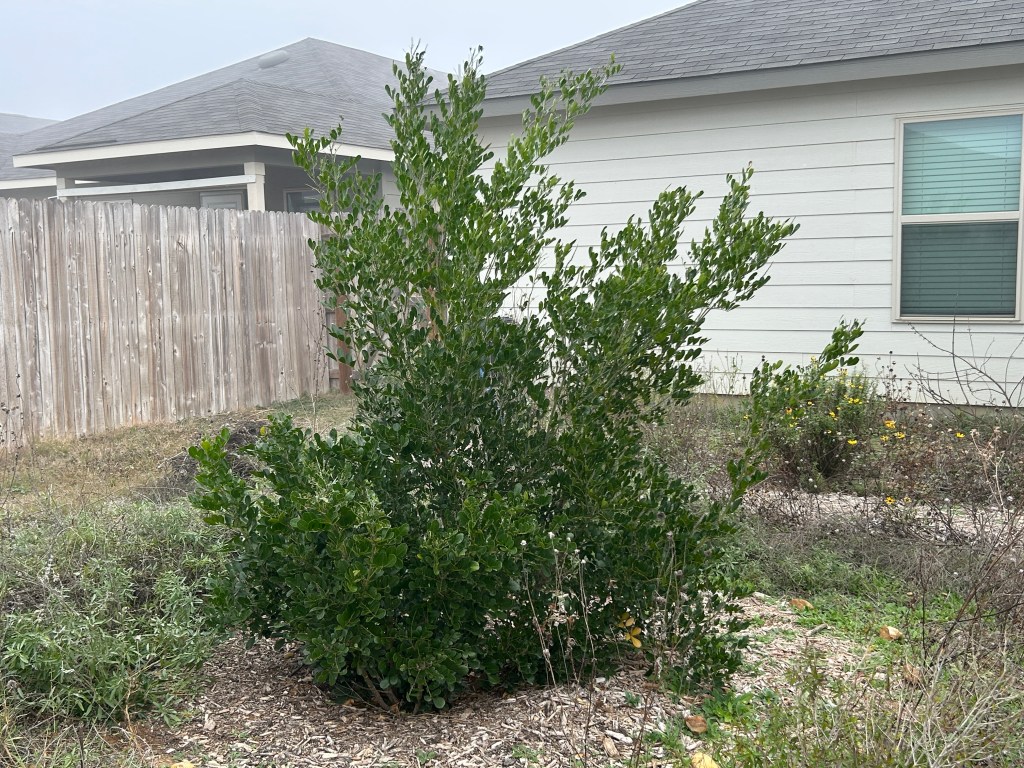 The Texas Mountain Laurel (Dermatophyllum secundiflorum) was the very first tree that I planted here, in spring 2023.