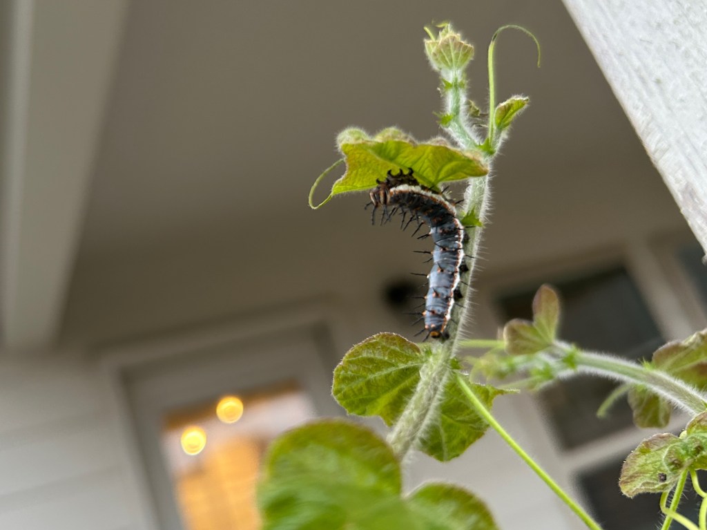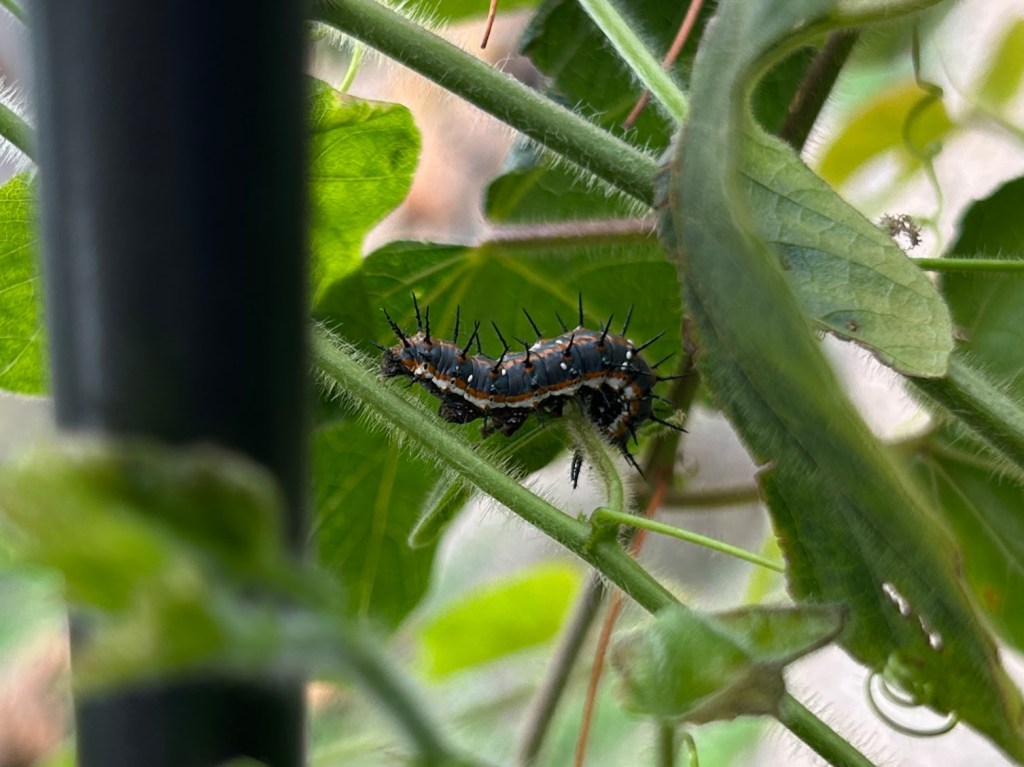 Of course I was curious as to what I was seeing. Were these also Gulf Fritillary caterpillars or something different? By recording an observation in iNaturalist and asking for help from the volunteer experts there, I got the answer back that these look like late instars of Gulf Fritillary caterpillars.