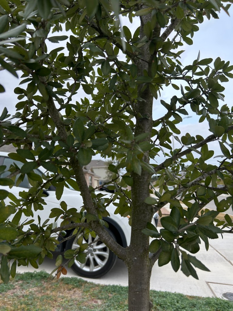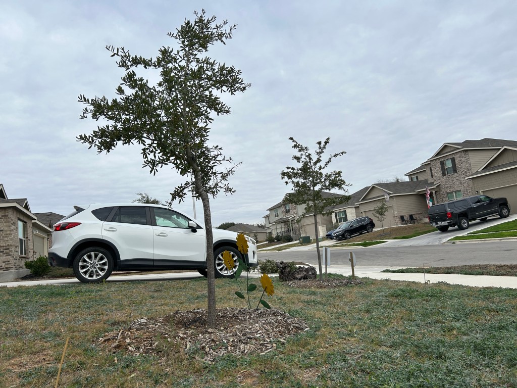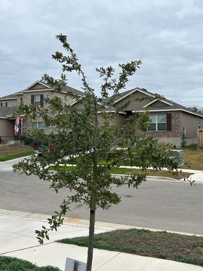 When we moved into a newly built house in Seguin, there were two young Live Oak trees in the front yard. These were probably cheaply bought by the developer in bulk, sight unseen. Nevertheless, three years later, they seem to be reasonably happy and the main trunks are vertical.