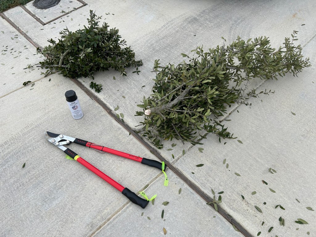 This oak tree had more upward-curving branches than its neighbor and so I did not take them all this year. I removed the one that was the biggest and strongest.