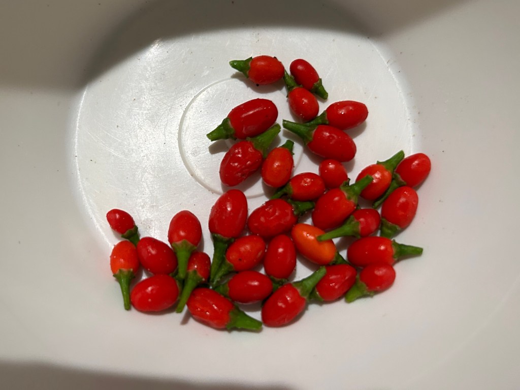 I am not brave enough to eat chile pequins myself — they score 30,000-60,000 on the Scoville scale — but birds like them, and I have “spicy” friends who use them, too!