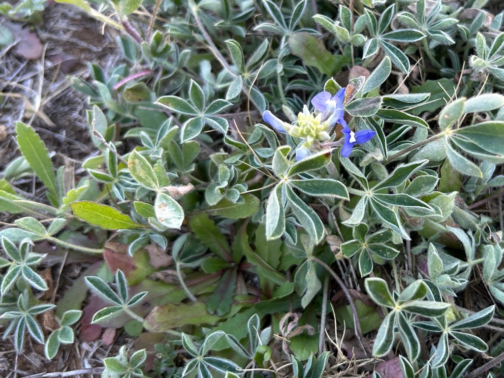 I seeded Texas Bluebonnets (Lupinus texensis) in front of the house in fall 2023 and now there are hundreds of plants in that “meadow” area. There are also many behind the house as well. This is how tightly packed they are near the street.