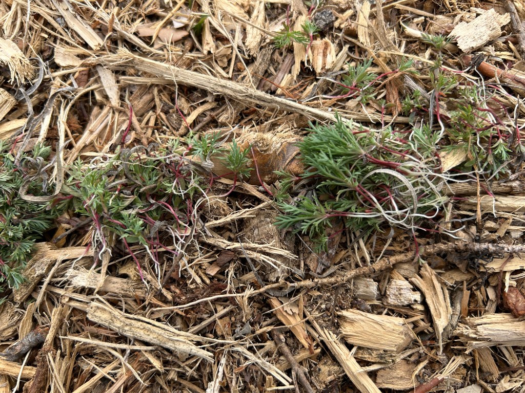 The region immediately surrounding the Desert Willow is occupied largely by Standing Cypress (Ipomopsis rubra), a tall biennial. I already have plenty of those growing in the garden, and I’d prefer to have anything growing underneath the Desert Willow be shorter than that. So I am in the process of pulling out the THOUSANDS! of tiny Standing Cypress that have self-seeded under the tree. I pull a few handfuls out each time I have a little time, but it’s an easy task and I’m likely to get to them long before they bloom.