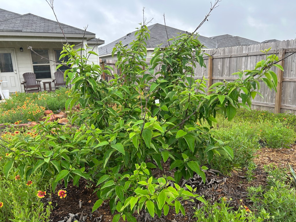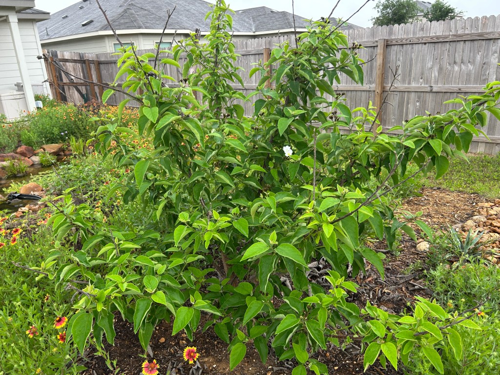 In addition to new leaves, the tree has made an abundance of bloom buds and some have already opened. I don’t think I’ve ever seen this many buds at the same time before.