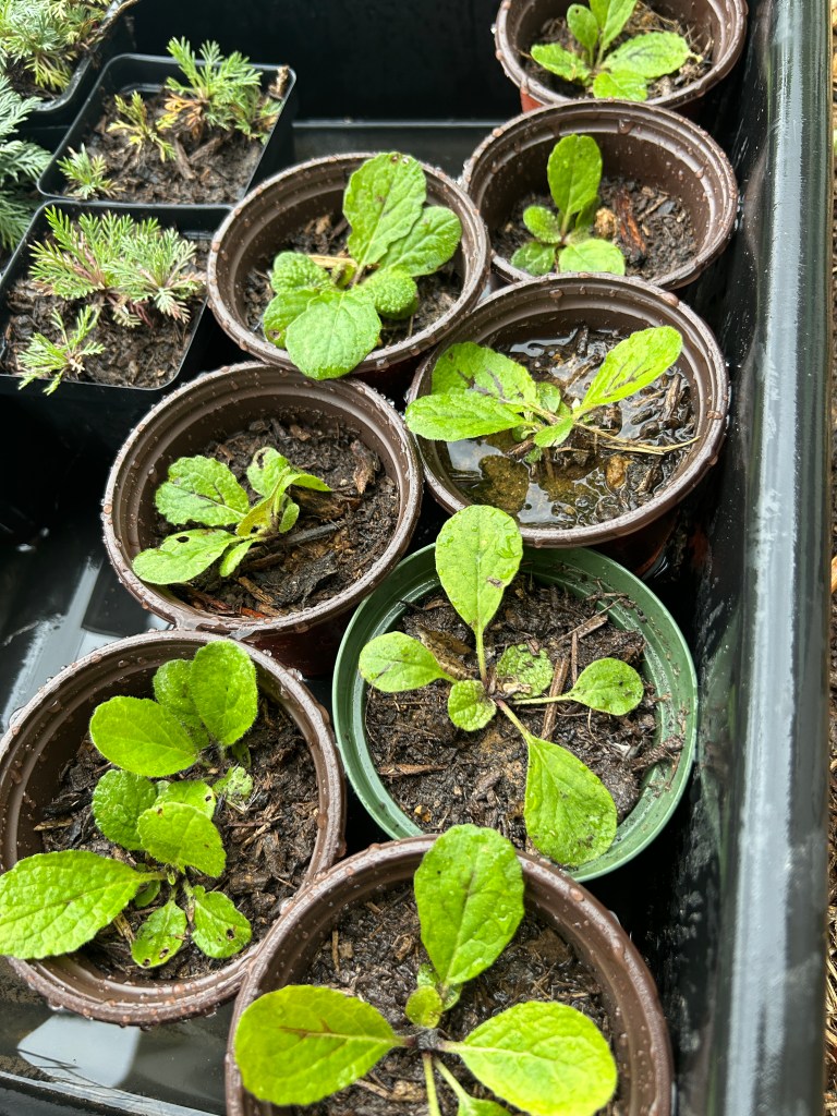 The second approach was to take the time to transplant Lyreleaf Sages into small pots with some decent soil, where they may have the chance to develop stronger roots before being moved to their final destination.